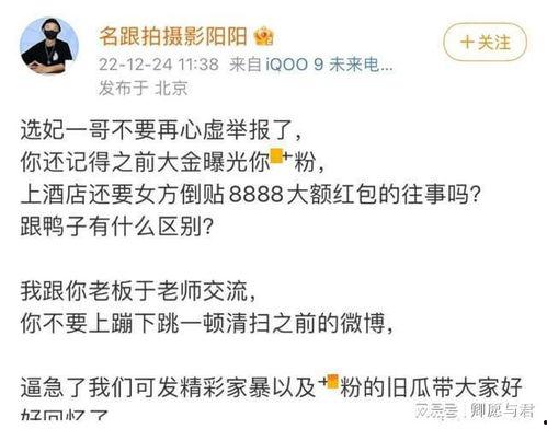 那么,大少这次爆料的背后,究竟隐藏着怎样的真相呢?据知情人士透露,这次爆料并非空穴来风,而是有确凿的证据。大少在得知这一消息后,决定勇敢地站出来,揭露娱乐圈的黑暗面。